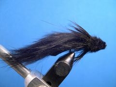 Tying NotesLeeches vary in color from black to various shades of brown, olive, and gray. Black seems to be the most popular color for Leech imitations. Leeches range from less than two-inches up to six-inches in length. Many are in the two to three-inch range. The leech pattern in the tying sequence is about two and one-half inches long. Leeches are wide and fairly flat as they swim in a smooth undulating up-and-down motion. They swim fairly slow -- about a foot every few seconds. Lead wire is optional, but adding eight to ten wraps of .025 lead wire at the front of the hook helps sink the leech to the bottom one-third of the water column where most leeches swim. Angling TipsEven though the Woolhead Leech is made of water absorbant materials, it sinks slowly. Without weight it tracks nicely on a floating line about two-feet below the surface. Those who are in the know claim that leeches swim near the bottom in lakes, ponds, and streams. In fact they have suction cups that hold them to rocks and other bottom structure. Because leeches swim near the bottom I prefer to weight them with .025 lead wire and fish them on a ten-foot sink-tip line that has been cut back to five-feet. If you fish a weighted leech on a floating fly line you might want to add a split shot at the junction between the leader and the fly. The added weight will help get the fly down quicker. Once the Woolhead Leech is where you want it, fish it with a slow strip-strip-strip retrieve. Remember that leeches are slow swimmers, swimming only a foot or so every few seconds. Having said that, don't hesitate to tie and fish the little guy without the benefit of lead. If you can wait long enough for it to sink to the right depth you will find that it swims more naturally and it's easier to fish at a slow strip-strip rate. Tying Instructions![]() Step 1 Clamp the hook in the vice and crimp the barb. Lay down a base of thread from the hook's eye to the hook's bend. Start lead wire slightly forward of the hook's point and wrap the lead forward 8 to 10 turns. ![]() Step 2 Cut a piece of Zonker Strip to a length of two and one-quarter inches from the tip of the fur to the point where you cut the piece from the strip. Note that the hide has been trimmed to a point on the tail- end and trimmed square on the front end. ![]() Step 3 Attach the Zonker Strip so that the front of the hide is exactly one-quarter inch from the front of the hook's eye. ![]() Step 4 Bind the Zonker Strip down with close and tight thread wraps with the hanging thread ending up exactly three-eighths inch from the front of the hook's eye. ![]() Step 5 Glue the Zonker Strip to the hook's shank with Zap-A-Gap. Move the strip out of the way to expose the thread wraps at the rear of the hook, add the glue to those thread wraps, and glue the hide to them. ![]() Step 6 Remove a fairly wide and webby feather from a hen neck and prepare it for tying in as the skirt of the fly. Strip away the fuzz at the base of the stem, stroke back the fibers, and prepare a tie-in point at the tip of the feather. ![]() Step 7 Tie in the feather by the tip "wet fly style" with the concave side facing the hook. ![]() Step 8 Wrap the feather forward covering all of the existing thread wraps. Tie off the feather and remove the excess. ![]() Step 9 Cover the exposed lead wraps and the remainder of the hook's shank with thread in preparation for building the wool head. The thread should end up hanging slightly forward of the hackle skirt awaiting the first clump of wool. ![]() Step 10 Cut a reasonable sized clump of lambs wool from the hide and comb it to straighten the wool and remove any tangles. ![]() Step 11 After the wool has been combed, trim both ends so that you end up with a clump an inch or so long. ![]() Step 12 Center the clump of wool at the hook's eye and push it to the rear until the hook is surrounded by wool and the clump is centered over the hanging thread. ![]() Step 13 Hold the wool tightly with the thumb and index finger of your left hand. Take two soft turns of thread - one directly on top of the other - and tighten the thread by pulling straight down. Don't let the wool spin on the hook's shank. ![]() Step 14 Stroke the wool back with your left hand, pull the thread through the wool and take a couple of tight turns of thread against the base of the wool. ![]() Step 15 Repeat the same process with a second clump of wool and tie off the thread in preparation for trimming the head to shape. ![]() Step 16 Remove the fly from the vice and rough trim the head to shape. Begin with the belly and proceed to the sides and top. A serrated curved scissors works best for this job. If you have a rotary vice, put the fly back in the vice and finish the trimming process. The vice lets you free up your left hand to seperate the wool from the hackle skirt while you complete the trimming process. ![]() Step 17 Congratulations! Your Woolhead Leech is complete.