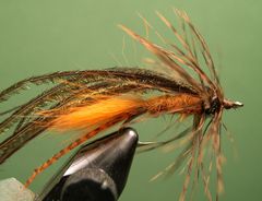Tying NotesThere are a number of Crawfish patterns that are realistic representations of this well known fish fodder. And, there are a variety of impressionistic patterns as well. The Swimming Crayfish is one of the latter. Many anglers claim that impressionistic patterns work much better than the realistic variety. Dave Whitlock's Near 'Nuff Crayfish is a good example of an impressionistic Crawfish pattern that many fly fisherman swear by. Bob Clouser, best know for his Clouser Deep Minnow Series, is also the creator of a well know impressionistic nymph imitation called the Clouser Swimming Nymph. The Swimming Crayfish is basically a Clouser Swimming Nymph with a few extra parts. This pattern is relatively easy to tie. The only critical part is to leave enough room at the front of the fly to tie off the thorax and wingcase and, in the process, leave enough room for a neat thread head. Try to use Hareline Dubbin Rabbit (Zonker) Strips that are Crawfish Orange - #19. It's just the right color for the tail and abdomen. The tail on the Swimming Crayfish is a tuft of fur from the Crawfish Orange Rabbit strip. And, when it comes time to dub the abdomen you can finger blend another bunch of the same fur. Angling TipsI am looking forward to fishing the Swimming Crayfish this spring in a little shallow lake near my home that is loaded with Carp. And, I also look forward to fishing it for Smallmouth and Rock bass in Northeast Iowa's scienic Volga River this summer and fall. I haven't fished the Swimming Crayfish yet, but you can expect me to update you later on how I fish this little guy, and the success that I anticipate having with it.