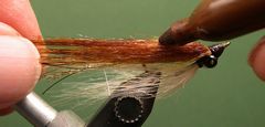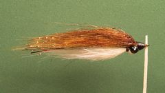 Tying NotesOnce again, Craft Fur is appearing in the catalogs of most of the major mail-order fly fishing outfits that sell fly tying materials. Years ago we used a product called Fly Fur for all sorts of fresh and saltwater streamers, but it eventually disappeared. The new Craft Furs on the market, produced by Targus and others, is called by a variety of names. In the case of Targus, which I prefer over other craft fur products, the brand name is FoxxFurr. But, all brands are basically the same. What sets craft fur apart from other synthetic hairs is that each patch has fibers varying in length. Cut off a bunch and you will have super long hairs, medium length hairs, and short hairs, all in the same bunch. Craft Fur comes in a variety of colors and it takes color from waterproof markers easily. There are even "Grizzly Colors," by Targus, that look just like naural grizzly saddle hackle laying over a "fur bed" of your color choice. You can't even the tips of Craft Fur in a hair stacker like you can bucktail, but all you have to do to even a bunch is to grasp the bunch of hair tightly by the butts and pull out the longer hairs. The Craft Fur Minnow in the tying sequence is tied on a size 6 hook but I have tied them on hooks ranging from size 4 to size 10. If you tie a Craft Fur Minnow that is larger than size 6, use larger bead chain eyes. For small flies use smaller eyes. Always use a thread color, for the head, that matches the color of the Craft Fur Minnow's back. I tie my Craft Fur Minnows in a variety of colors. In fact, using Craft Fur, you can duplicate the color scheme of any Clouser Deep Minnow. And, it's certainly easier to use than bucktail with basically the same results. Angling TipsI fish the Craft Fur Minnow like I would fish any Clouser Deep Minnow. I use Bead Chain eyes in place of the lead barbell eyes typically found on Clouser Minnows. So, if the fish are really deep I would suggest using a sink-tip or full-sinking line. I like to attach the Craft Fur Minnow, and all of my flies for that matter, with a Duncan or other fixed loop knot. If you're not familiar with this type of knot, click on "Warmwater Knots" to learn how to tie them. Tying Instructions![]() Step 1 Clamp the hook in the vice and crimp the barb. Start the thread at the hook's eye and lay down a thread base from the eye to the bend and return to about one-third of the shank's length behind the hook's eye. ![]() Step 2 Tie in the bead chain eyes with several figure-eight wraps. Make several wraps around the eyes to fill up the space between them. This will allow the white belly material to bulge above the eyes forming a transition to the belly. ![]() Step 3 Clip a clump of craft fur from the patch and remove the longest fibers by gripping the butts tightly. Then remove the longest fibers with your finger tips. This is a substitute for the process that you would use to even bucktail tips in a hair stacker. To tie in the belly, move the thread in front of the eyes and bind down the butts of the hair clump with tight wraps of thread. ![]() Step 4 Move the thread behind the eyes and bind down the craft fur with three or four tight wraps. ![]() Step 5 To create the back, turn the fly over with the barb pointing up and move the thread to the front of the eyes. Tie in five or six strands of gold Crystal Flash that is at least as long as the belly fur. ![]() Step 6 Next, tie in five or six strands of copper Flashabou that are the same length as the Crystal Flash. You should be forming a neat thread head during the process of tying in the back materials. ![]() Step 7 Select and prepare a clump of brown craft fur just as you did with the fur for the belly. Tie it in directly on top of the flash material. Form a neat thread head, then tie off the thread with a Zap-A-Gap Knot. To make a Zap-A-Gap Knot, simply coat about an inch of the tying thread nearest the hook and wrap the wet thread over the existing thread wraps. Let the glue dry and clip the thread. ![]() Step 8 Coat the head with head cement. I prefer Sally Hansen's "Hard As Nails" nail polish for this job. ![]() Step 9 When I tied this fly I preferred dark brown craft fur but had only a light brown so I made it darker with a dark brown waterproof marking pen. ![]() Step 10 At this point your Craft Fur Minnow is ready to be fished. ![]() Step 11 If you want to shorten the Craft Fur Minnow ,use a curved serriatated scissors for the job. Some tiers prefer the belly to be shorter than the back and this can be accomplised using the scissors. ![]() Step 12 This is how the Craft Fur Minnow looks after it has been shortened to about two inches.