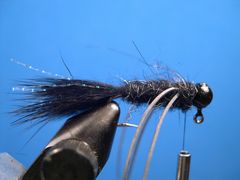 Tying NotesTie the Micro-Jig in any color and size that suits you. I prefer to use a 1/80th oz. Jig Head. My favorite colors are Black, White, and Chartreuse. The recipe calls for Rainbow Thread which is a thinner version of Crystal Flash. I prefer it over Crystal Flash, but Crystal Flash will work just fine. ![]() Wapsi Fly offers Ball Style Jig Heads with a gold hook and a dull lead head in sizes 1/8,1/16,1/64,1/80, and 1/124 oz. I prefer the middle sizes (1/80 oz. and 1/64 oz.). The 1/80 oz. jig head has a size 10 hook and the 1/64 oz. has a size 8 hook. There are a lot of variations of this little guy. For instance, I sometimes put white legs on a black body or black legs on a white body or black legs on a chartreuse body. You can also add a soft hackle collar if you like. Even though the head of the fly in the tying sequence has been painted black (this particular jig had a silver head and hook) I prefer the Wapsi Jig Heads with the gold hook and the dull lead head. The recipe calls for Hare-Tron Dubbin which is a blend of antron fibers and rabbit fur. It's easy to dub and it really gives the fly a buggy look when it's brushed with a dubbing brush. Angling TipsThere are a couple of ways to fish the Micro-Jig. One is to fish it in and around rocks and weeds with short strips which impart an up and down (jigging) action. The other is to fish it in heavy cover (brush piles and sunken trees) under a strike indicator (bobber). Either way, fish it on a fairly light tippet. If you're fishing it properly, in and around cover, you're going to frequently loose the fly and the fly is a lot easier to break off with a light tippet. Fishing the Micro-Jig under a strike indicator can be deadly for fish like Crappies that are holding in drowned trees and brush. Simply attach a strike indicator a foot or so above the fly and let it sit in the strike zone over the cover. Some would call it "bobber" fishing and that's probably true. But it sure is effective. Tying Instructions![]() Step 1 Insert the Jig Hook in the vice, crimp the barb, and start the thread at the head. Lay down a thread base from the front of the hook to the hook's bend. ![]() Step 2 Clip a clump of rabbit fur from a Zonker Strip that's as long as the hook and tie it in for the tail ![]() Step 3 Tie in a couple of strands of Rainbow Thread or Crystal Flash on each side of the tail. ![]() Step 4 Dub a body with Hare-Tron Dubbin to the two-thirds point on the hook. ![]() Step 5 Tie in a two-inch long piece of rubber legging material for the legs on the far side and the near side of the hook's shank. ![]() Step 6 After the legs have been attached, apply more dubbing to the standing thread and dub behind the legs, between the legs, and in front of them, up to the head of the fly. ![]() Step 7 Tie off the thread with a couple of half-hitches or a whip finish behind the lead head. ![]() Step 8 Trim the rubber legs to a length that suits you. I like them to be between one-half and three-quarters of an inch long. ![]() Step 9 Lightly brush the dubbed body with your dubbing brush to give the body a "buggier" look. If you are not familiar with the velcro dubbing brush click on "Dubbing Brush" to find out how to make one. ![]() Step 10 Your Micro-Jig is ready to fish.